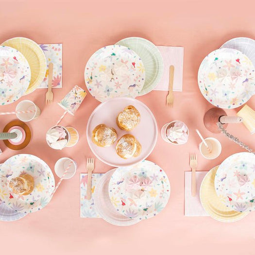 Grab a handful of stardust and head to Neverland alongside Tinkerbell and Peter Pan! 8 cardboard cups designed by My Little Day, decorated with pastel fairies and flowers for a perfect fairy birthday decoration. Combine with plates and napkins from the fairies collection for an assumed total look