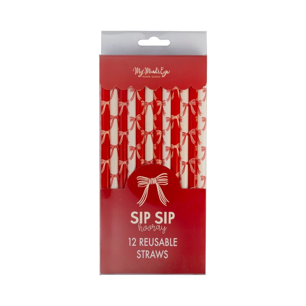 Christmas Bows Reusable Straws Set of 12