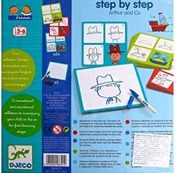 The set includes: 12 double sided picture cards, erasable drawing board and a dry wipe pen.