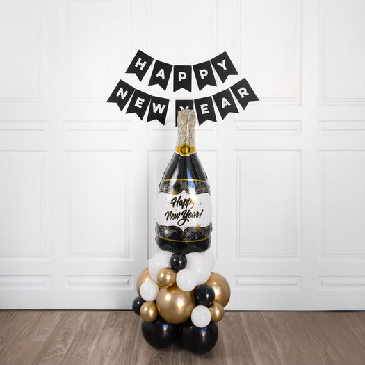 Another year, another party – make this one extra special with this New Year balloon stand! The balloon stand features a large Champagne foil balloon accompanied by a stand with latex balloons. All of these are inflated for an effortless way to add glam to your party!