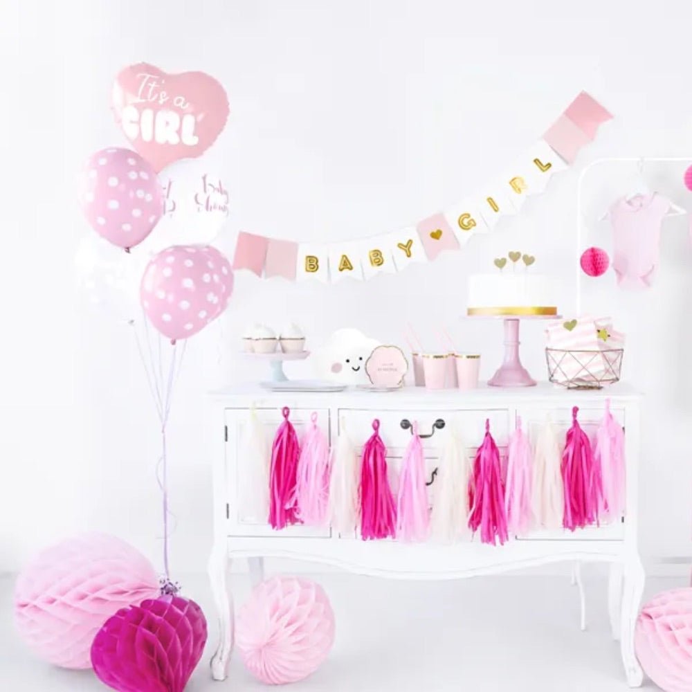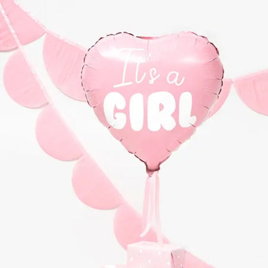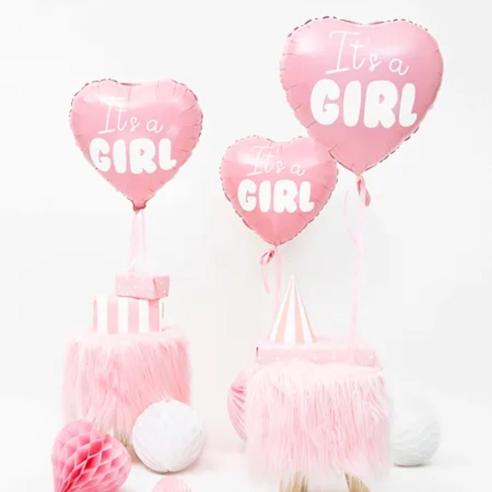 Spread joy with this heart-shaped foil balloon in lovely light pink! With "It's a Girl" white lettering, it's the ideal for baby showers, new arrivals or gender reveal celebrations.