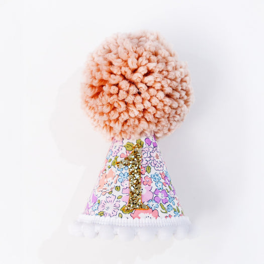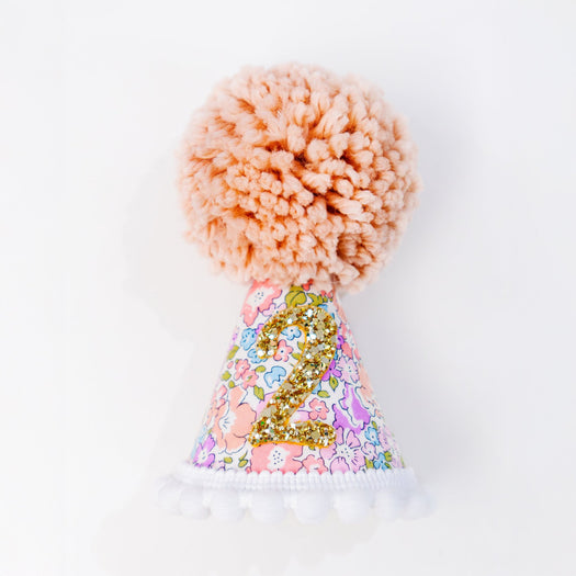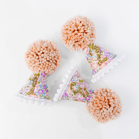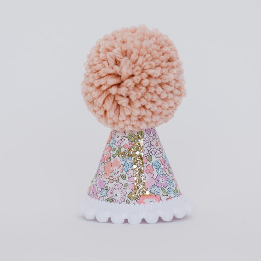 Liberty print hat with cute white pom pom trim and oversized pink pom pom on top. This hat is 100% designed and made by U Name it. Your hat will be sent in a plastic display box free of charge making it the perfect gift. These hats are also fabulous for family photo shoots or for quite simply celebrating and then making the perfect keepsake.