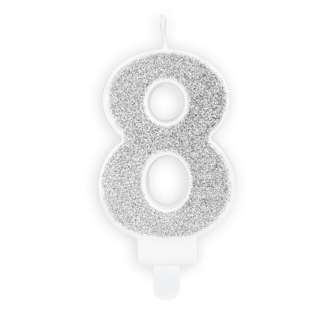 Sparkly silver number candles are perfect for adding a touch of sparkle to any birthday celebration. Choose from 0-9 to customize your cake and make the birthday person feel extra special with shimmering style.