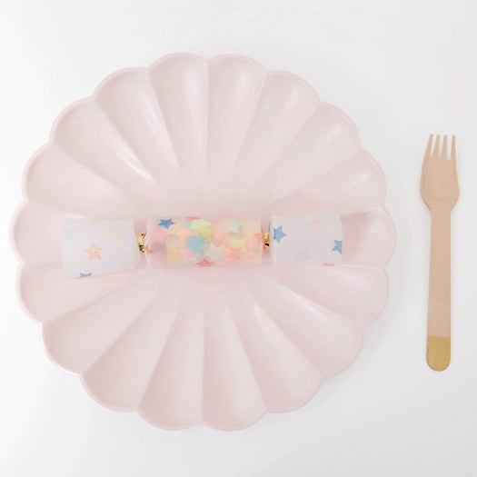 Make sure your celebration goes off with a bang by laying your table with these brilliant confetti crackers! Each one is elegantly decorated with beautiful multicoloured glitter stars and filled with a temporary tattoo, a paper hat, a joke and plenty of confetti!