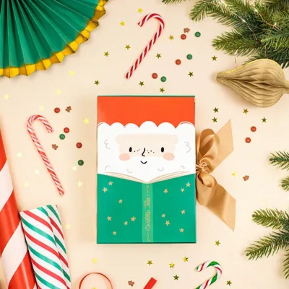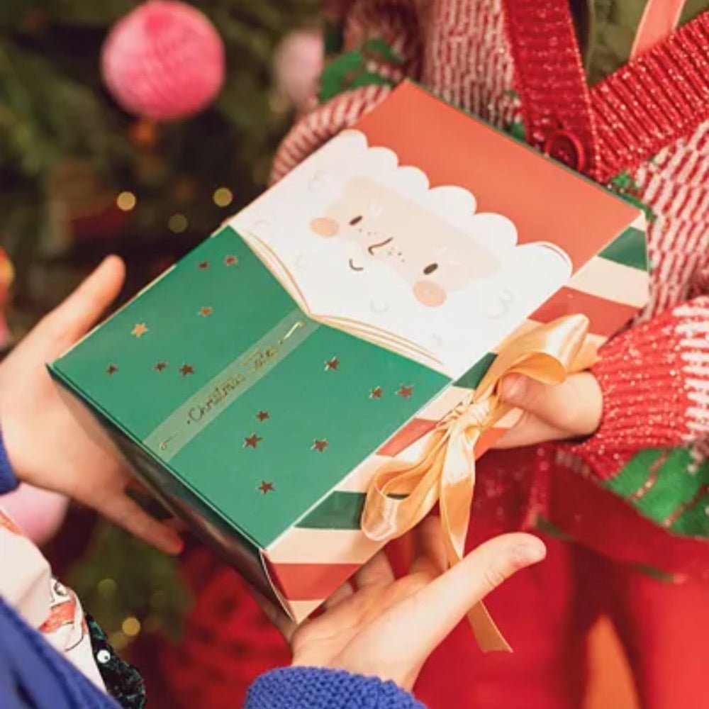 Spread holiday cheer with this Santa gift box. Topped with an elegant gold ribbon, it's the perfect way to present your Christmas gifts with style. Make unwrapping as joyful as the season itself!