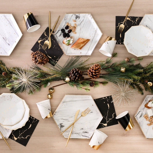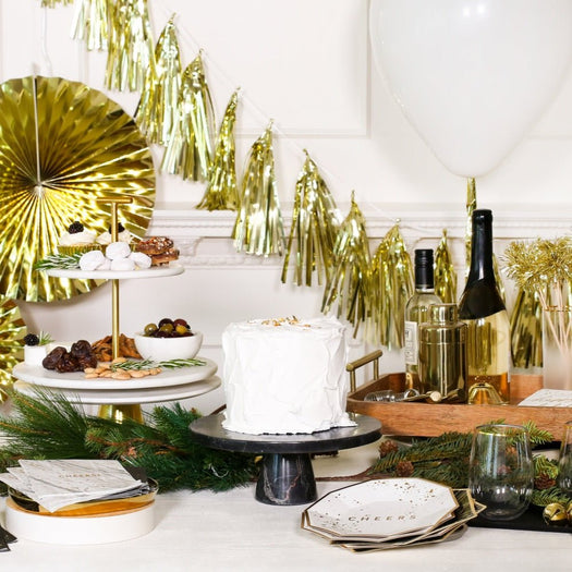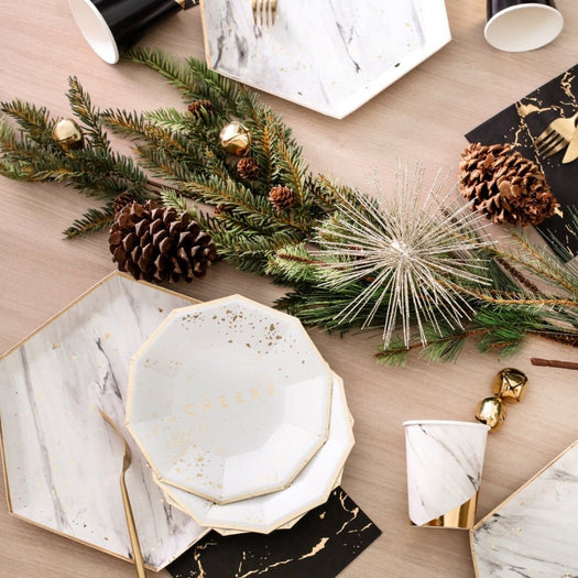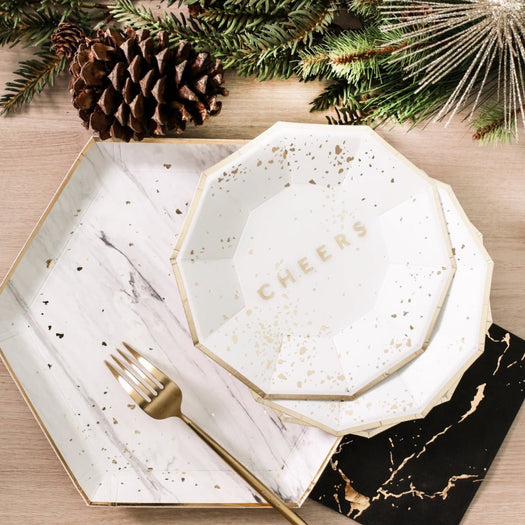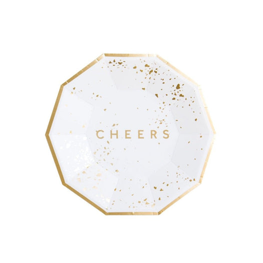 Beautifully understated with 'Cheers' in gold foil, our elegant small party plates elevate the everyday celebration. Pair with our gorgeous selection of cocktail napkins for all of your cocktail shindigs and holiday soirées.