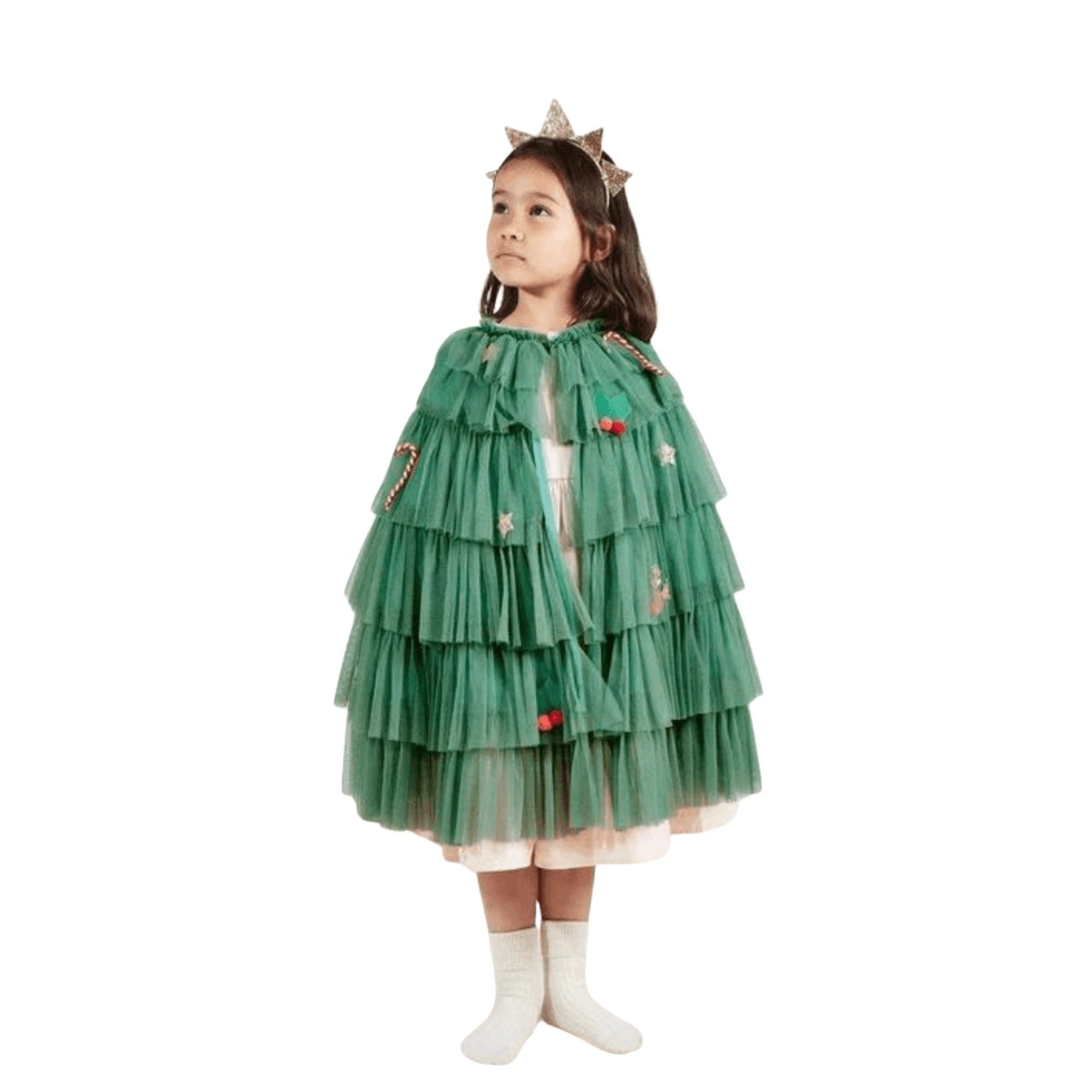 A Christmas tree is a real highlight for the festive season, and now your kids can pretend to be one with our fabulous costume! It's perfect for parties, or for wearing at home for a jolly, fun time. The cape is beautifully crafted from tulle, with lots of embellishments, and comes with a sparkling gold star headband.