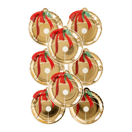 What is more jolly than a jingle bell? In our opinion nothing! So make sure that you add these jolly jingle bell shaped plates to your Holiday table this year! These party plates are the perfect side plate for a set down Christmas dinner on train expedition heading to the North Pole. Or the ideal size to hold all of your Christmas goodies that you plan to pair with a warm cup of cocoa. Featuring gold foil accents these jingle bell plates will add a twinkle to your guests' eyes.