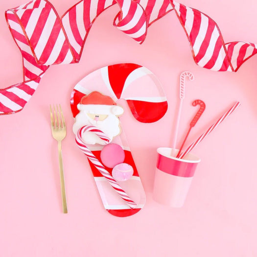 Make your cookie decorating party festive with these red and pink candy cane dessert plates.