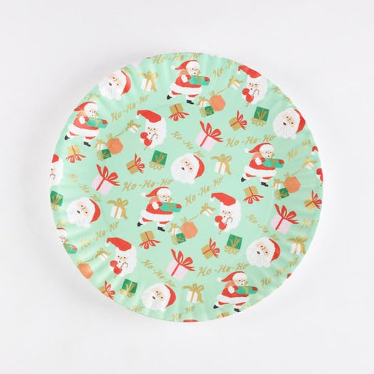 This festive platter is a great way to serve some special Christmas cookies or other goodies. It has the classic shape of a paper plate, but this is made of food-safe BPA-free melamine, and the platter size is much larger than a paper plate. The mint colored background is nice, and there are cartoon Santas and golden Ho-Ho-Hos.