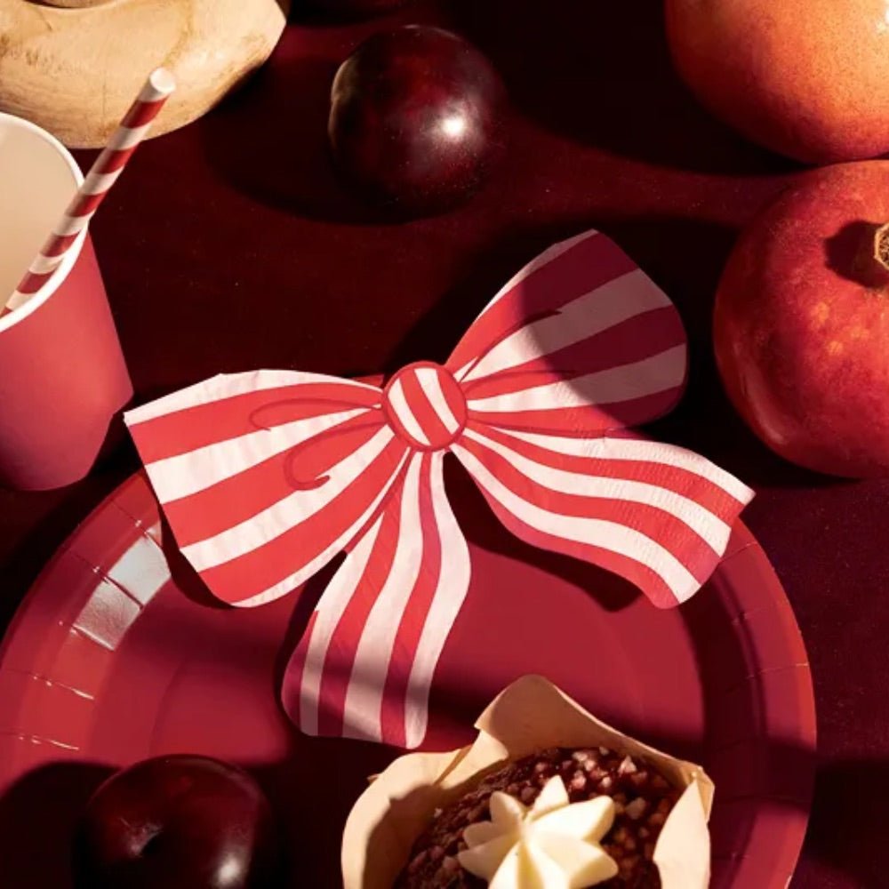 Dress up your table with these charming bow-shaped paper napkins featuring cheerful stripes. Perfect for adding a touch of whimsy to parties, celebrations, or everyday dining.