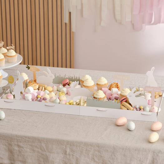 Add a finishing touch to your seasonal display with this Easter grazing board. This grazing board is designed to take you on a fun Easter egg hunt journey, with adorable signage and bunnies to help you along the way.