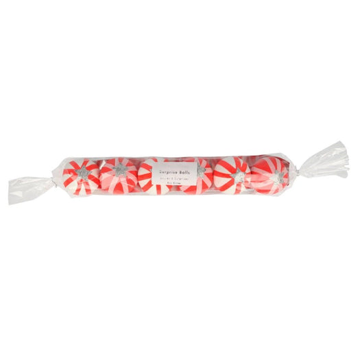 If you want to give your family and friends a fun surprise treat, then pop these fabulous balls at your place settings. They are crafted with traditional red and silver festive colors, and unwrap to reveal a paper hat, joke, self-adhesive mustache, 2 stickers, and a friendship bracelet. They are excellent to use as stocking fillers or as party bag treats too. Covered with red and white crepe paper, and topped with plant based Eco silver glitter star stickers They are tied with shiny silver foil.
