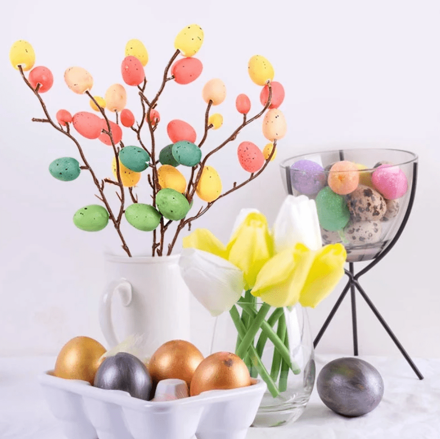 Take your Easter decorations to the next level with this Easter stem with colorful speckled eggs. Simply add to a vase or jar to create your own centrepiece statement.
