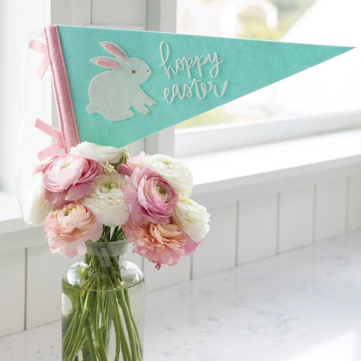 Get ready for some hoppy Easter fun with this felt pennant banner featuring a cute bunny design. Perfect for adding a playful touch to your Easter decorations. Hop to it and grab one now!