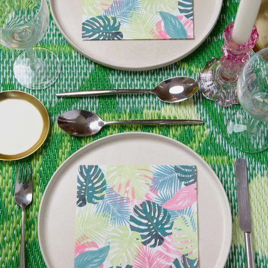 This pack of 20 home compostable and recyclable napkins features palm leaves in pretty pastel colours. The perfect party tableware for a tropical party, summer birthday, picnic, BBQ or garden party!