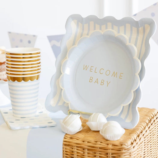 Featuring charming blue stripes, this cup adds a festive touch to baby showers and birthday parties. Perfect for serving drinks with style, it complements any blue-themed celebration while keeping the party fun and elegant.