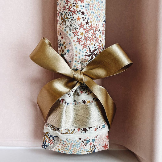 All Happy Cracker covers are made from Liberty of Londons iconic cotton fabrics and dressed with the finest ribbons (made from recycled bottles) and trims. Inside you’ll find a reusable cardboard canister to hold your chosen treats.