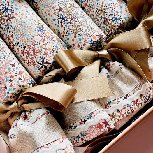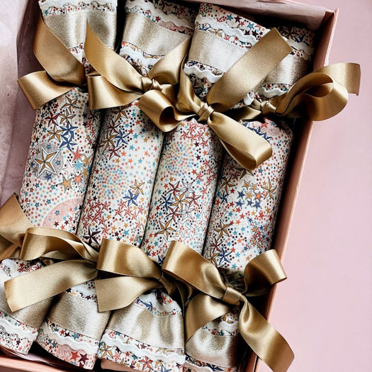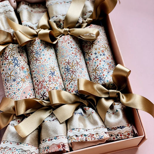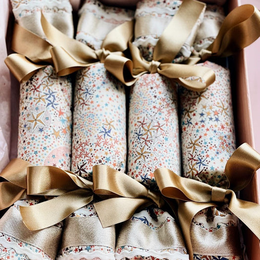 A beautifully handmade set of fabric celebration crackers. Designed for use all year round!