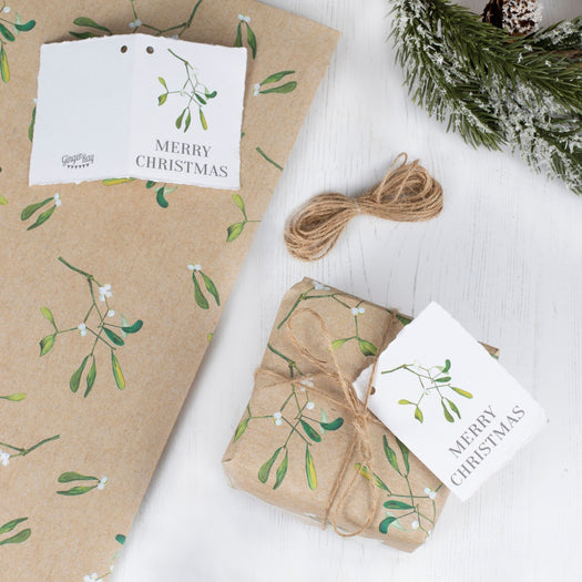 The beautiful mistletoe wrapping paper set contains everything you need to make your gifts look as good on the outside as the exciting present inside. The simplistic kraft background and watercolour mistletoe design is beautifully elegant and will look stunning with the accompanying tags and twine.
