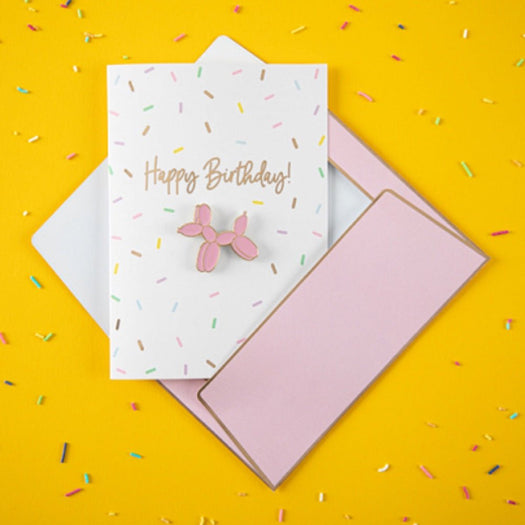 Happy Birthday Card with Balloon Dog Enamel Pin