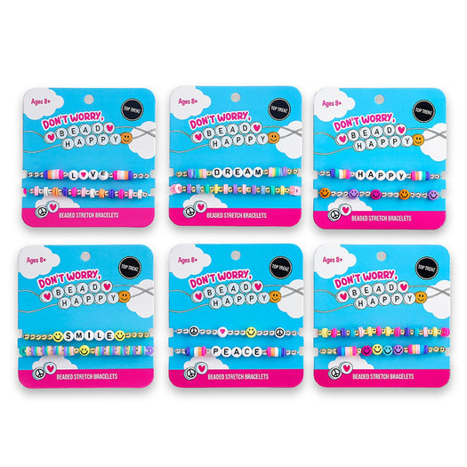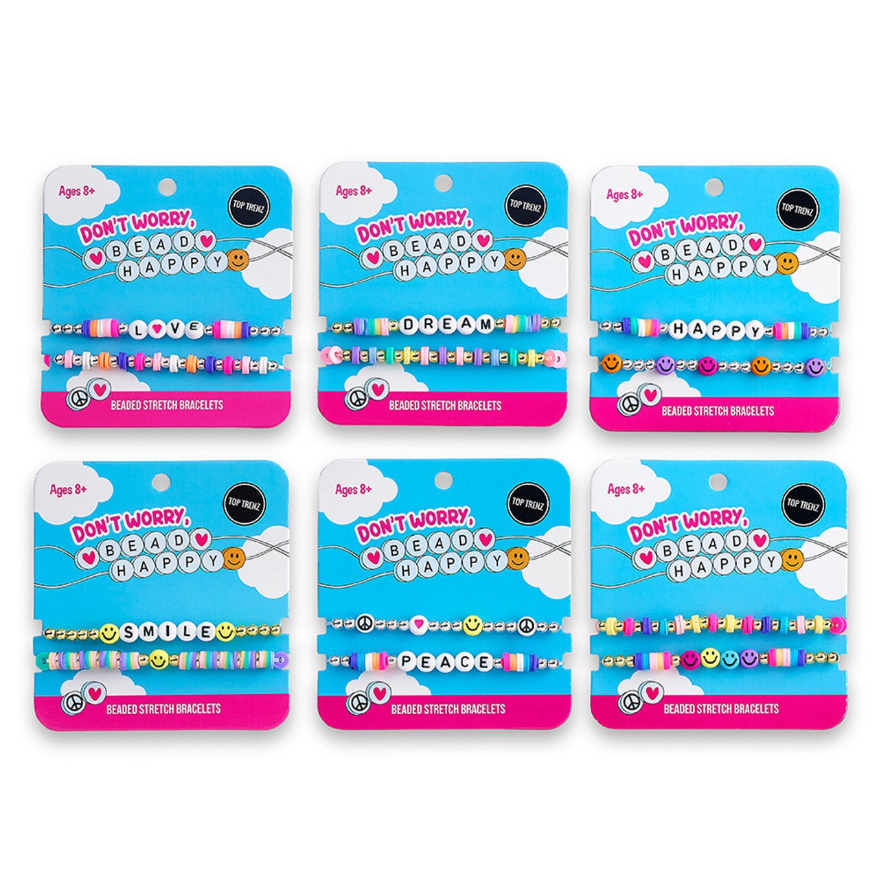 Stay cute and stylish with these Don't Worry Bead Happy Beaded Stretch Bracelets.