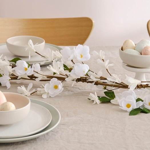 This beautiful white blossom artificial flower garland is perfect addition to your tableware - simply weave that spring feeling through your table by using our white blossom garland as a table runner.