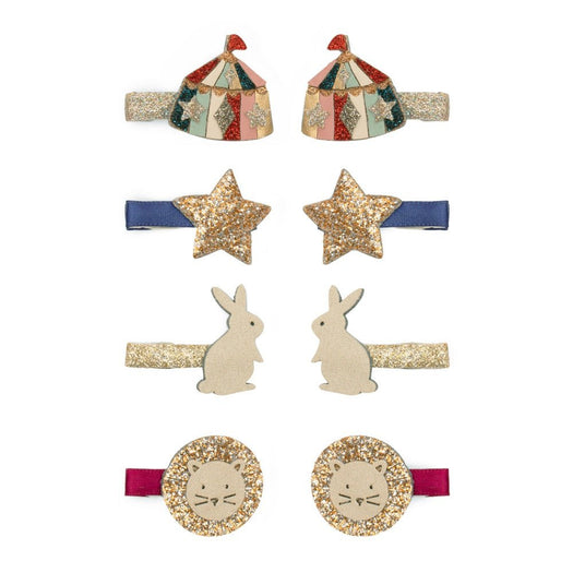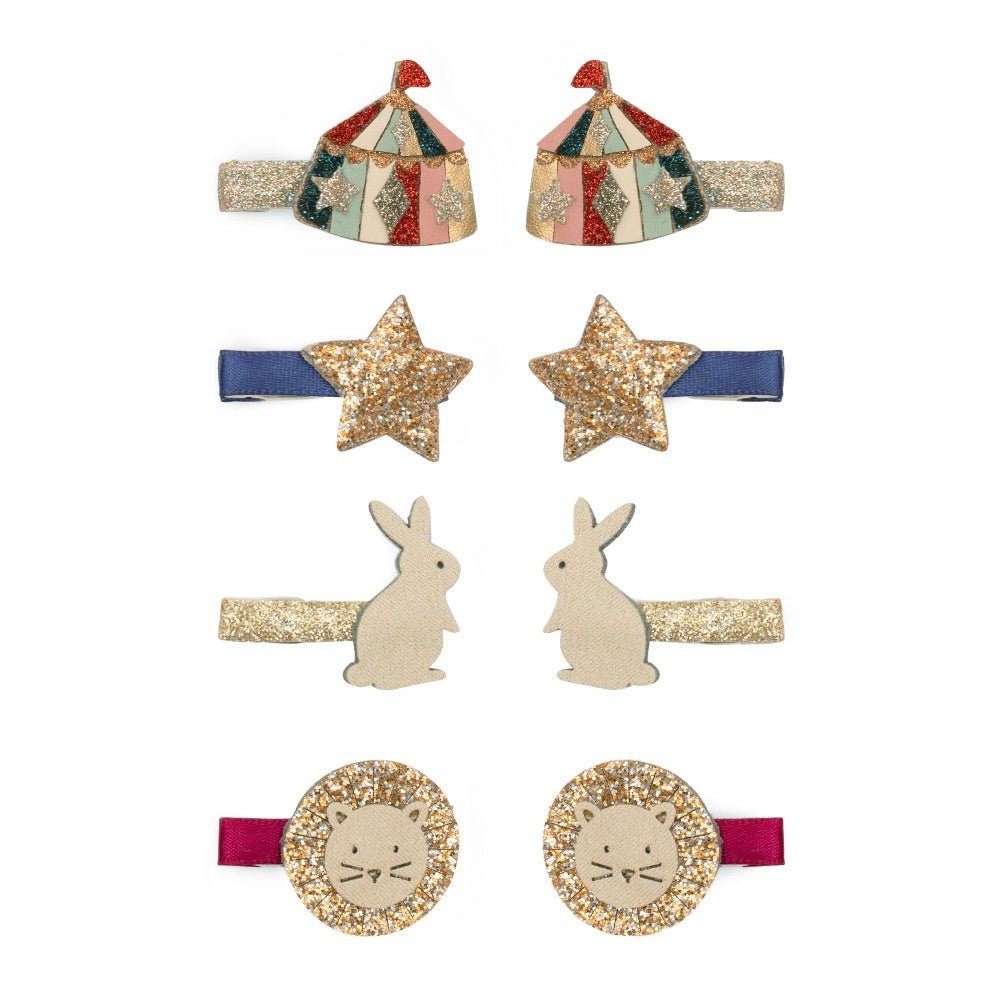 Roll up, roll up for the cutest show on earth! The Circus Mini Clips set features a fun mix of circus-themed designs. Perfect for playful styling, party looks, or everyday dress-up with a twist of magic and imagination.