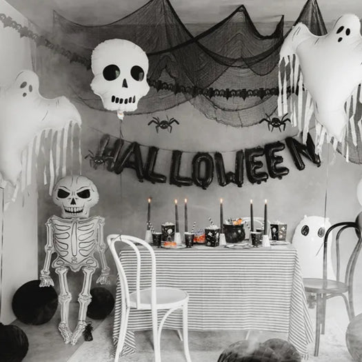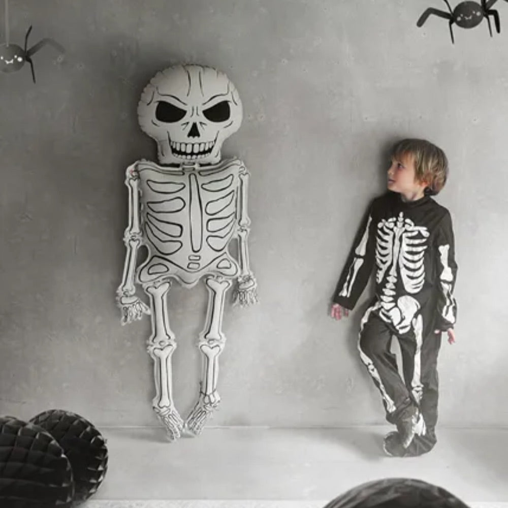 Elevate your party decor with this Skeleton XXL Foil Balloon, an eye-catching 129 cm statement piece that adds a striking touch to any celebration. Featuring a cream and black color scheme, this oversized balloon combines spooky charm with a sleek design, perfect for Halloween parties, themed events, or gothic celebrations.