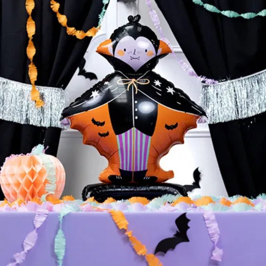 Celebrate Halloween in style with this standing Dracula foil balloon, measuring 81cm. Its vibrant, detailed design brings a spooky yet fun atmosphere to any party or event.