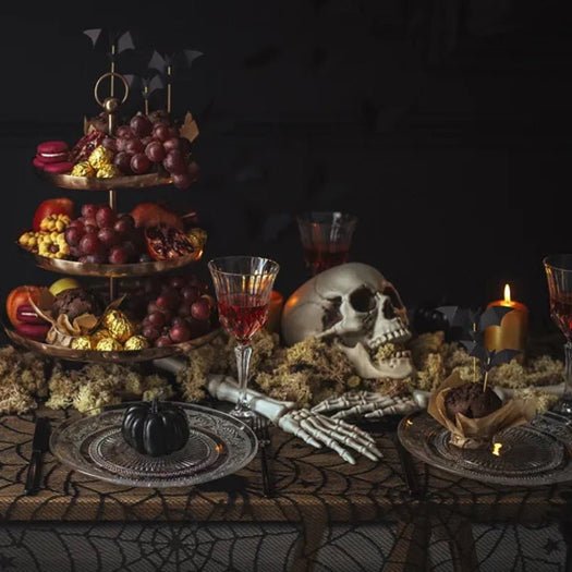 Add a touch of eerie elegance to your Halloween festivities with this Spider Web Tablecloth. Designed to drape perfectly over your table, it features an eye-catching spider web pattern that instantly creates a spooky atmosphere.