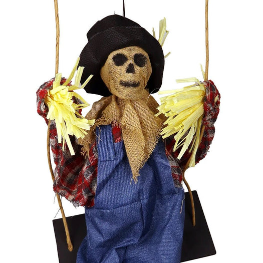 Swinging Motion: Adds an extra layer of horror as it swings back and forth, as if possessed by a ghostly force. The scarecrow is attached to the swing for easy setup.