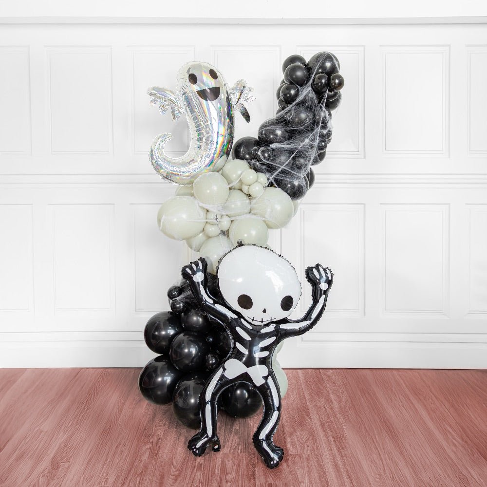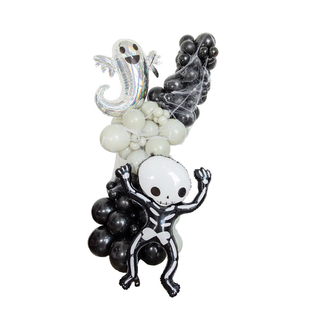 Welcome trick-or-treaters and get ready to thrill and delight your neighborhood with our fun Halloween balloon stand! Its bright, festive colors will capture the attention of anyone who passes by, and its playful design will put a smile on everyone's face!