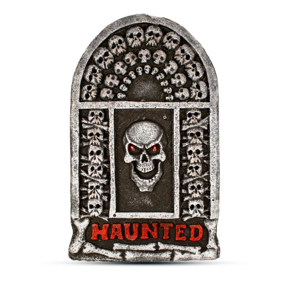 On a foggy Halloween night, the air is filled with whispers of the restless spirits. A brave soul wanders through the eerie yard, their flashlight flickering over a sinister tombstone. Suddenly, glowing red eyes pierce the darkness, revealing a dead black bird perched on a stake. Rats and spiders scuttle over the skeletal remains spelling ""D-E-A-D."" The brave soul's heart races as they stumble upon a dead black rose, the final touch in this terrifying tableau. They've just encountered the Mad Toys Creepy 24-Piece Tombstone Set, a nightmarish decoration that brings the dead to life.