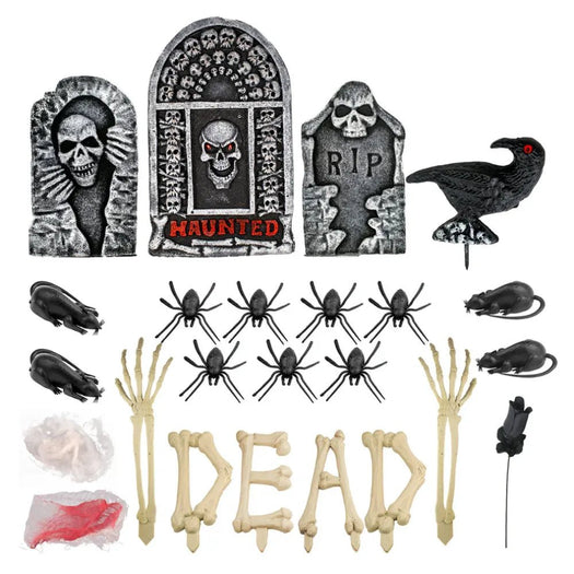 Complete Cemetery Scene: Includes a realistic replica tombstone and a variety of creepy props to create a spine-chilling atmosphere.