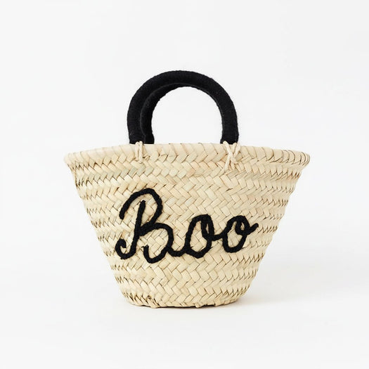 Get ready for trick or treat! This handmade palm leaf Basket with script embroidery is perfect for sweets hunting.