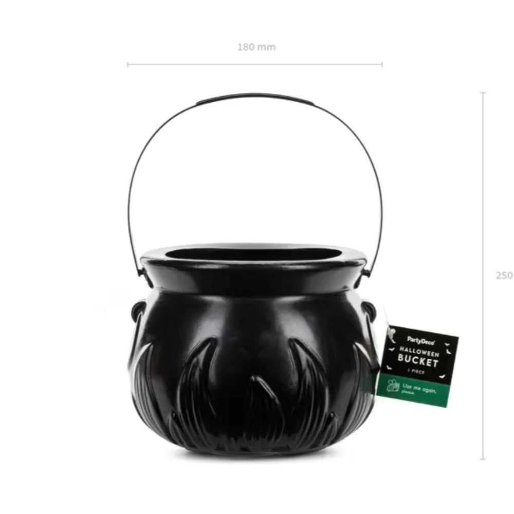 Embrace the spooky season with this cauldron treat bucket. Lightweight and spacious enough to carry treats, small toys, or party essentials, it’s ideal for trick-or-treating!