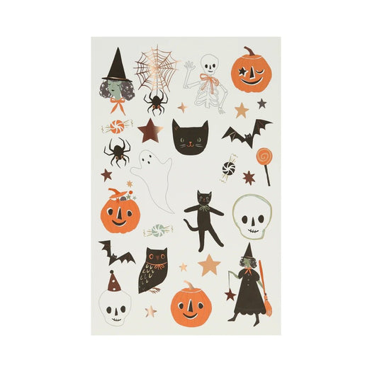 It's tattoo time! Kids will love to receive these Halloween character tattoos with shimmering copper foil details. Ideal as a Halloween party activity, party favors or pop them into party bags.