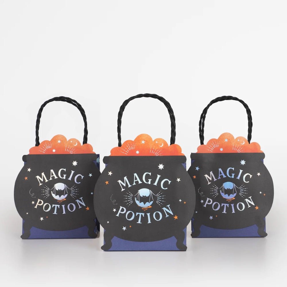 Bubble, bubble, toil and trouble! Our party bags will cast a spell on your guests! They are cleverly crafted to look just like magic cauldrons – perfect for wizard and witch parties, Halloween parties, for trick or treating, or whenever you want to add an extraordinary effect to any celebration.