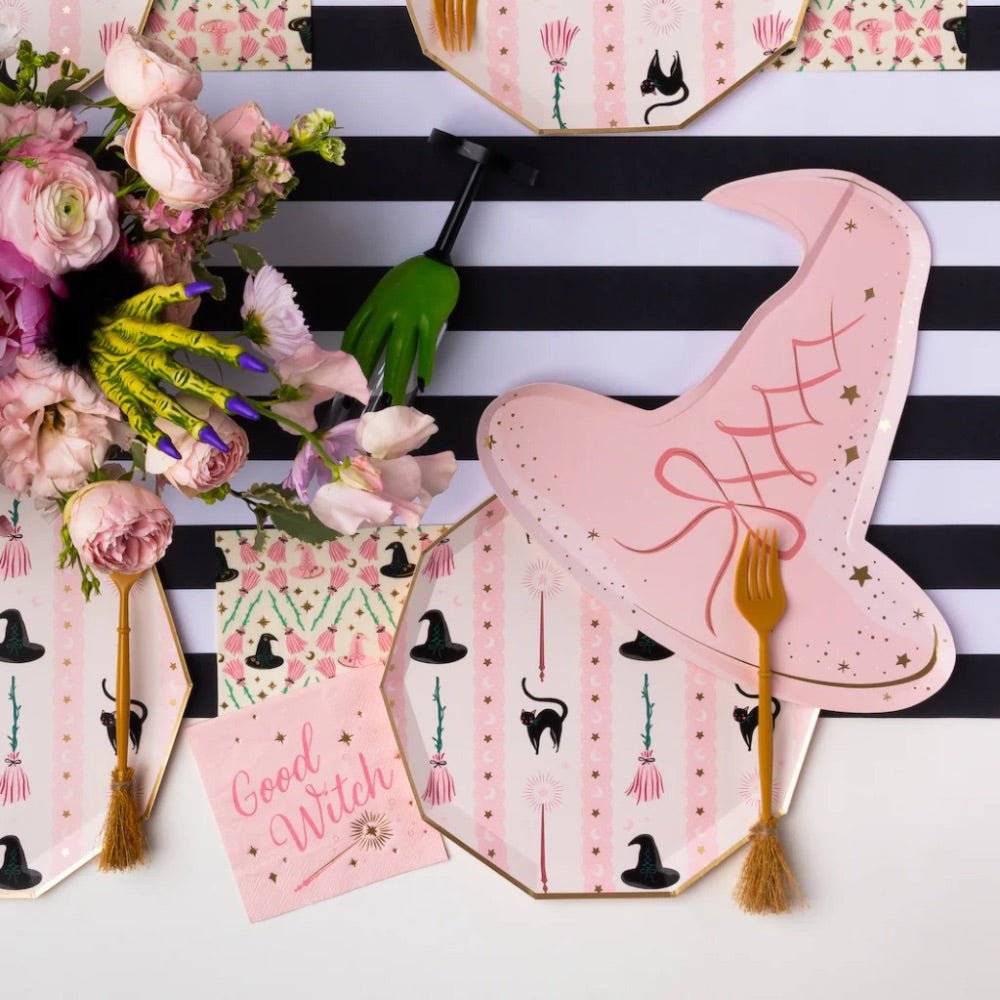 These Pink Witch Hat Plates are an enchanting addition to any Wicked-themed party or Halloween celebration. Their vibrant pink color adds a playful twist to traditional spooky décor, making your table setting both festive and unique. Designed to complement our Witch Hat & Broom Large Plates and Wicked Witch Cocktail Napkins, they help create a cohesive and magical atmosphere that will captivate your guests. Perfect for serving treats or snacks, these plates bring charm and fun to your event, ensuring your Halloween soirée is truly spellbinding and memorable.