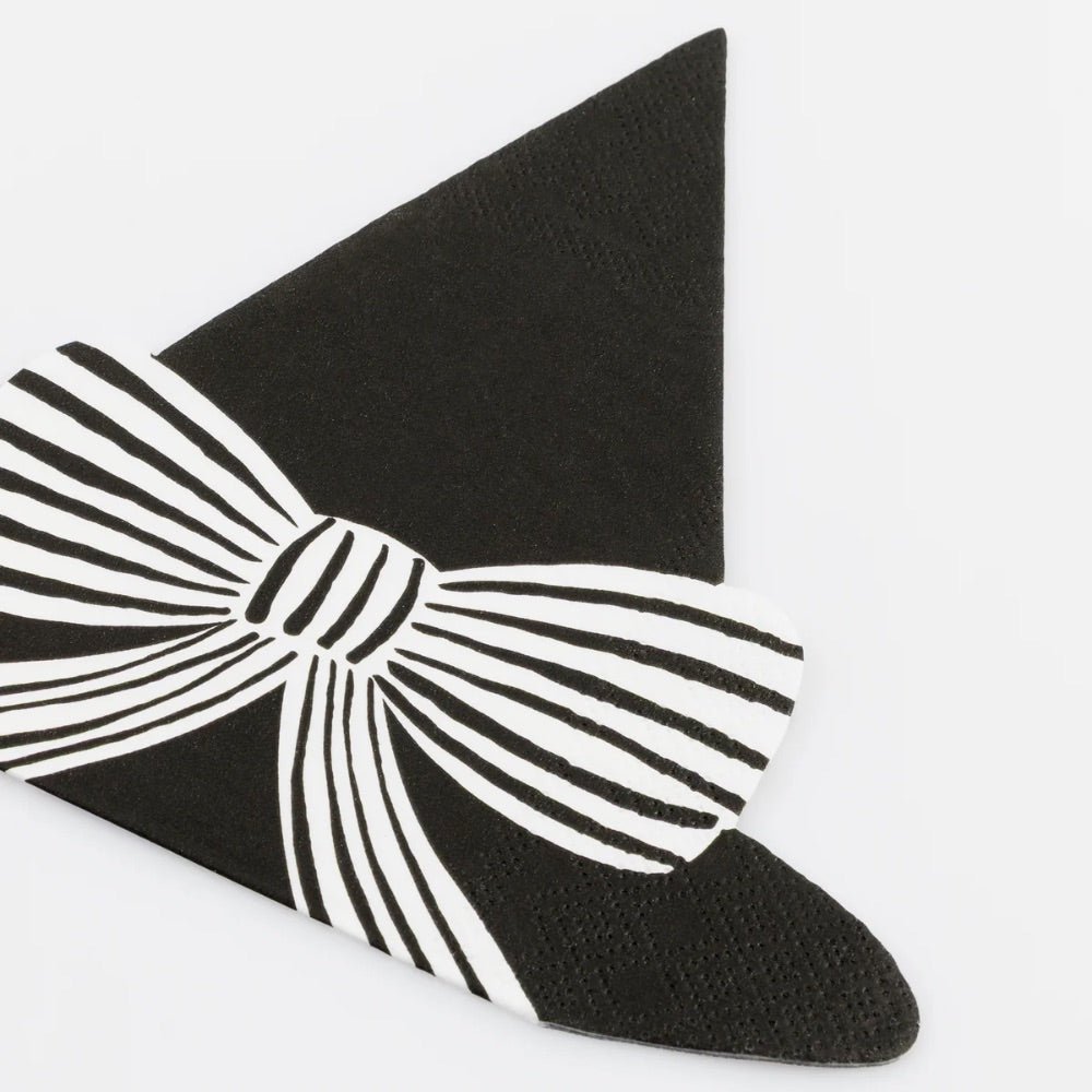 The witching hour is here again, so thrill your little coven with an elegant, eerily decorated Halloween party. These witch hat napkins, adorned with chic striped bows, will add spellbinding flair to your table. The black-and-white design pairs beautifully with the rest of your Halloween tableware and decorations.