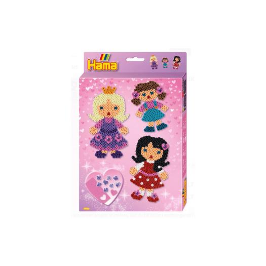 1 doll pegboard No. 330, 4 bead supports, 1 Hama Gems, 1 foam rubber sheet, color printed design sheet, instructions and ironing paper.
