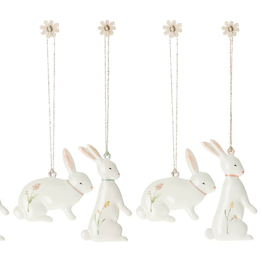 The fine Easter bunny ornaments in metal from Maileg are perfect for decorating on a branch or for decoration on the table. They come in a beautiful box, and have beautiful hand-painted floral details.
