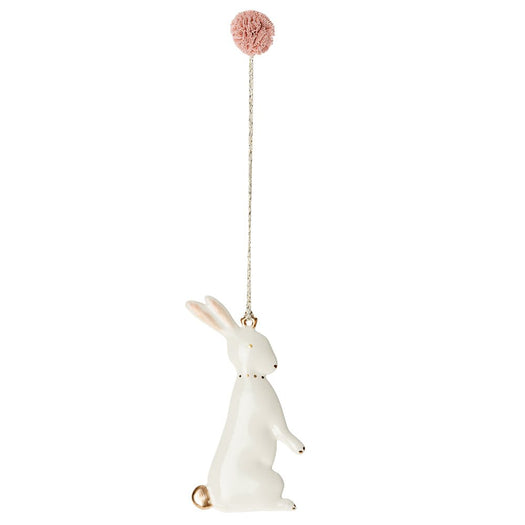 Easter bunny ornament in metal with hand painted details and a small rose pompom. They are perfect on a branch as decoration or on the easter table.