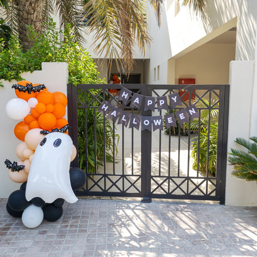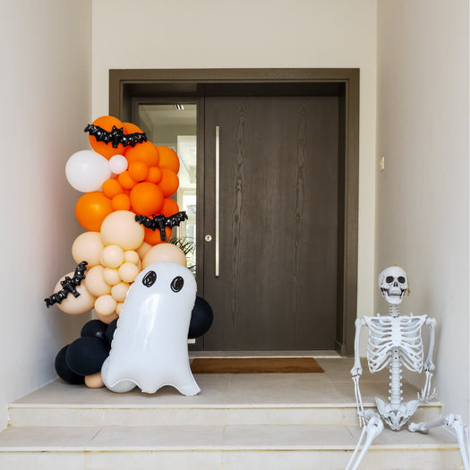 Welcome trick-or-treaters and get ready to thrill and delight your neighborhood with our fun Halloween balloon stand! Its bright, festive colors will capture the attention of anyone who passes by, and its playful design will put a smile on everyone's face!