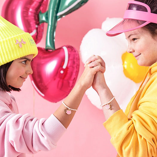 Card in pink with "Will you be my Best Friend?" inscription! The card comes with two bracelets and a white envelope with colorful print.