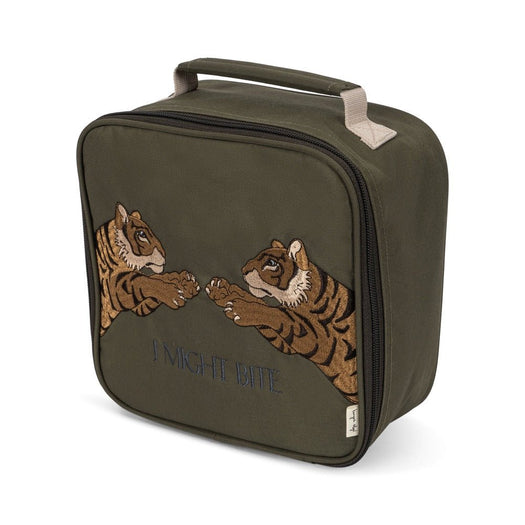 Make lunch time fun and cool with this cute zippered lunch bag from Konges Sløjd. Made in recycled polyester designed with a solid shape. The bag features a padded handle and a spacious compartment with an elasticated inner mesh pocket made for cooling elements. The bag is designed with thermal insulation material inside. Our Konges Sløjd lunch box and drinking bottles both fit into the main compartment.