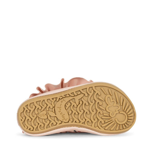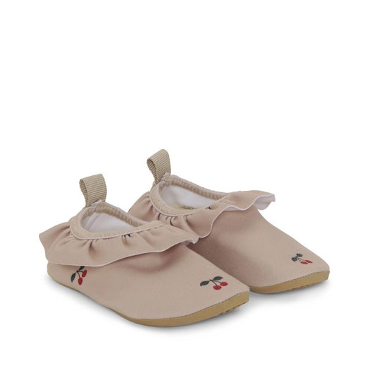 Swim shoes made in 95 percent polyester and 5 percent elastane designed with a decorative frill. Feature flexible non-slip rubber soles and are easy to pull on. The shoes are practical for a day at a rocky beach or a day by a slippery pool. The stretchy fabric protects against the sun’s UV rays with the highest ultraviolet protection factor, UPF 50+