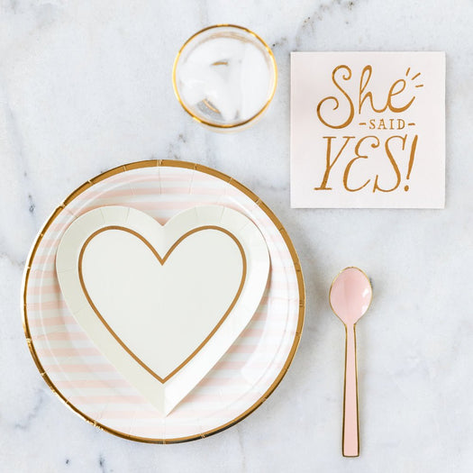 Show that piece of cake some love with this gold foil accented heart shaped plate. This paper plate cream color makes it a great party neutral that will complement any bridal shower, hen party or even Valentine's soiree. Love your party tablescape with these gorgeous shape party plates; they're the perfect way to celebrate that she said yes!