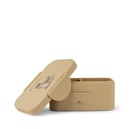 Get your little ones ready for lunch time with this adorable Konges Sløjd lunch box with compartments. The lunch box has a practical lid, making it easy for the child to open and close. Inside the lunch box, there is one big room with multiple adjustable compartments that can be removed if desired. These is also a small snack box with lid.
